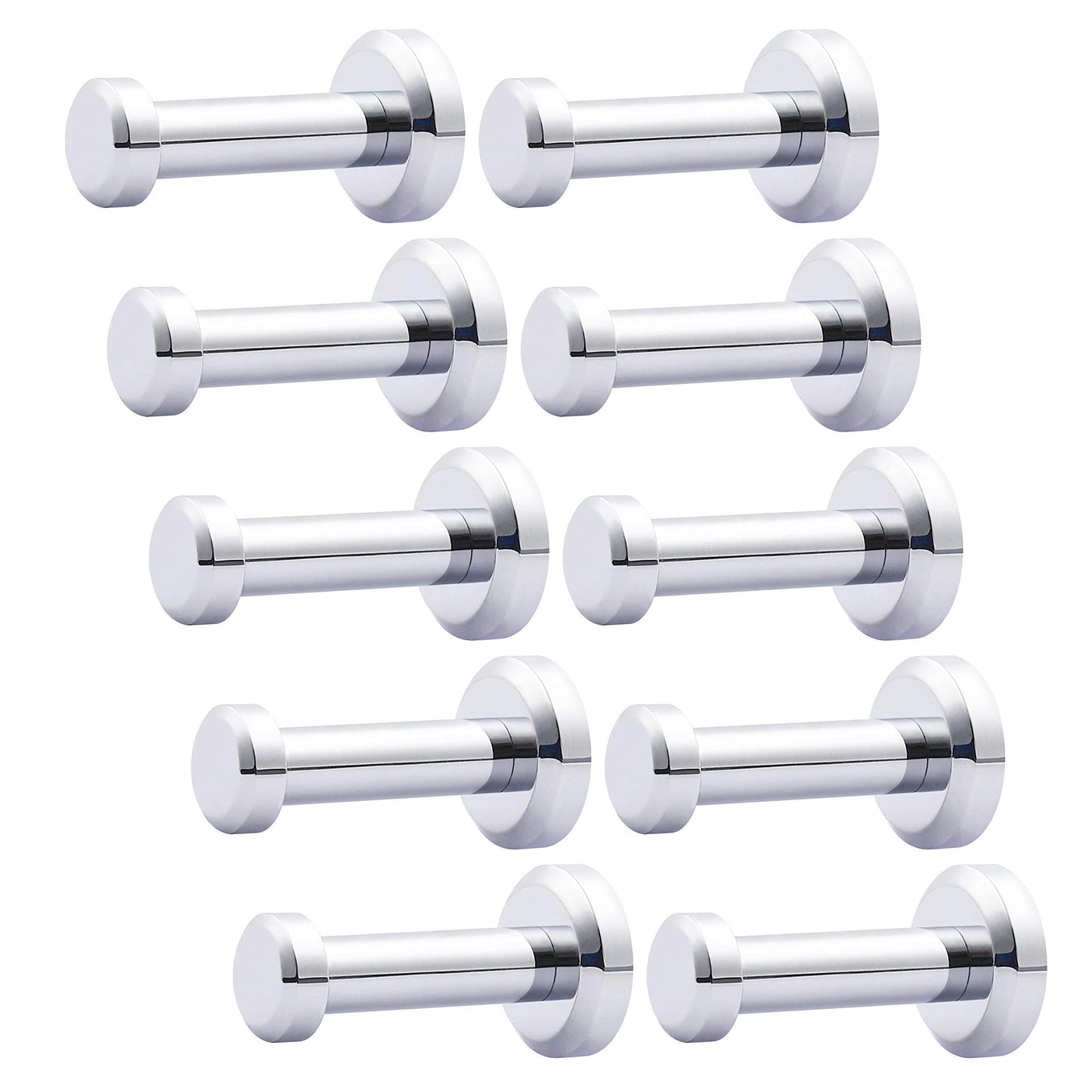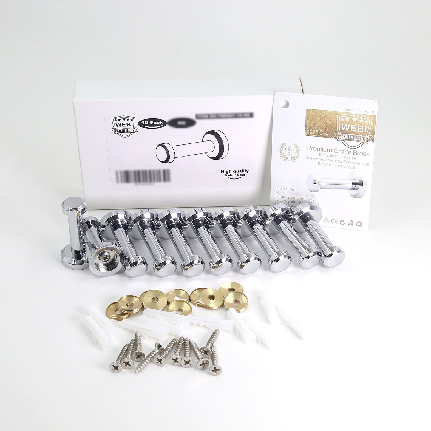 10 Pack, WEBI Solid Small Size Coat Hook, Robe Towel Hanger, Brass & Stainless Plating Heavy Duty Wall Mounted Holder, Perfect for Indoor & Outdoor Use, Easy Installation, Polished Finish
