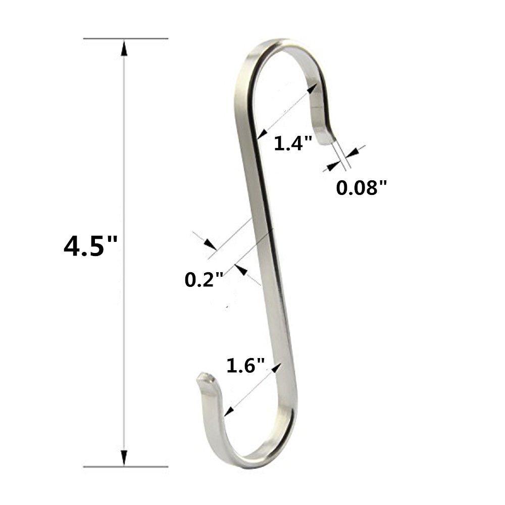 - MATERIALS- These S shaped flat Hanging hooks made of SUS 304 Stainless Steel, they can be used outside without fear of rust. Each hook can carry up to 18 pounds.