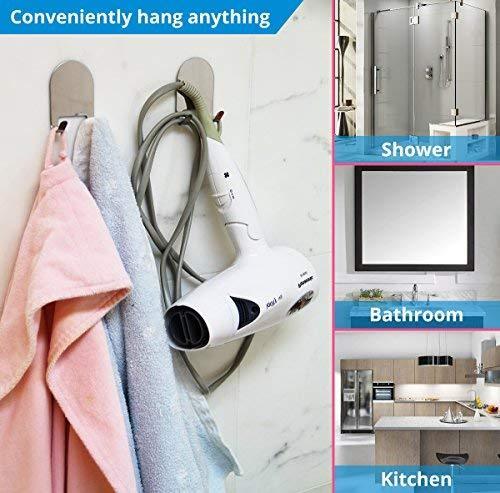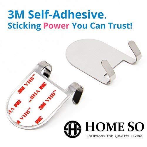 3M Adhesive All-Purpose Hooks by HOME SO - Heavy Duty Hook Hanger Sticks Anywhere - Holds Anything, Towels, Keys, Coats, Loofahs, Wreath, Jacket, Hat, Clothing - Pack of 4 (Stainless Steel Chrome)