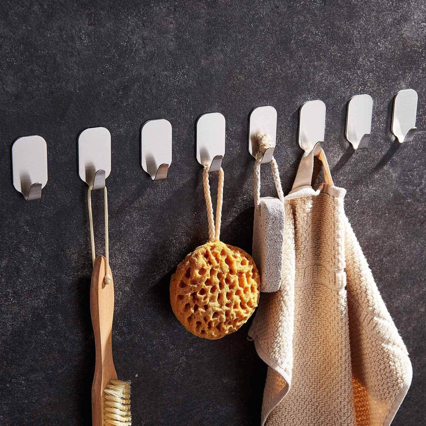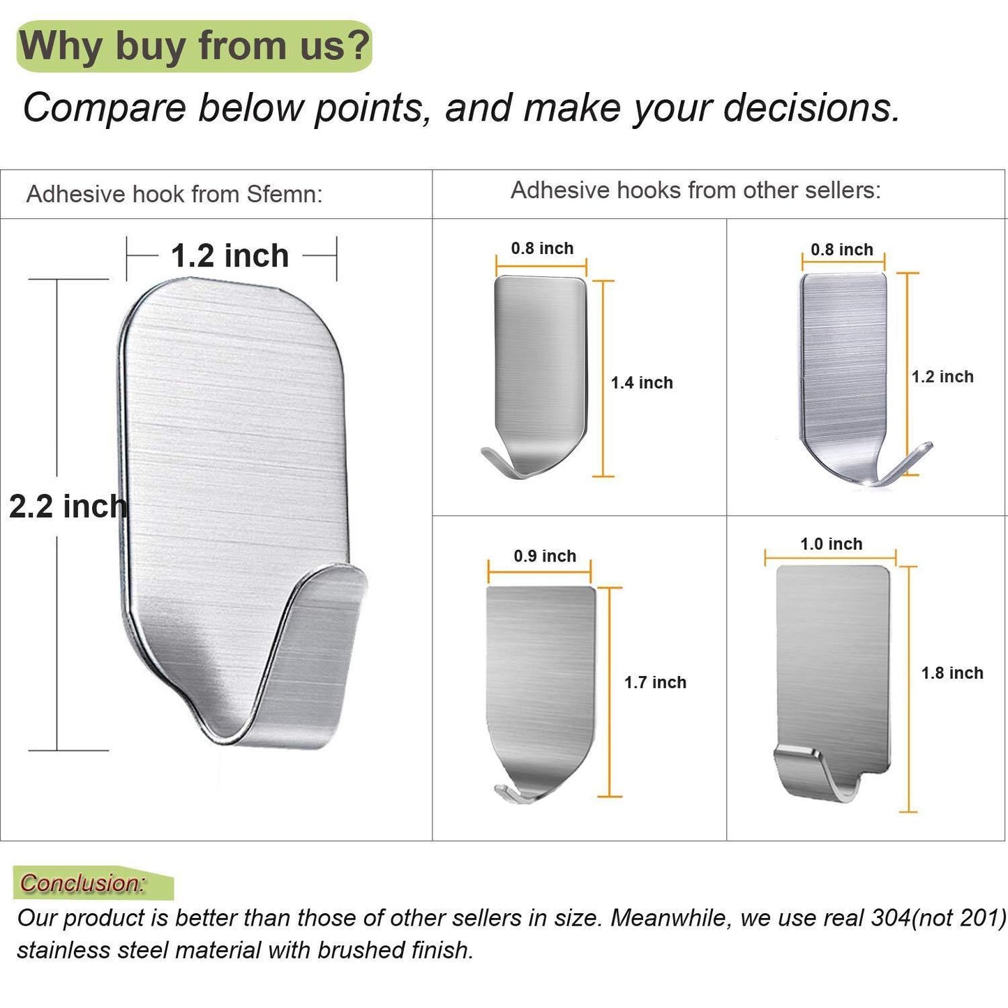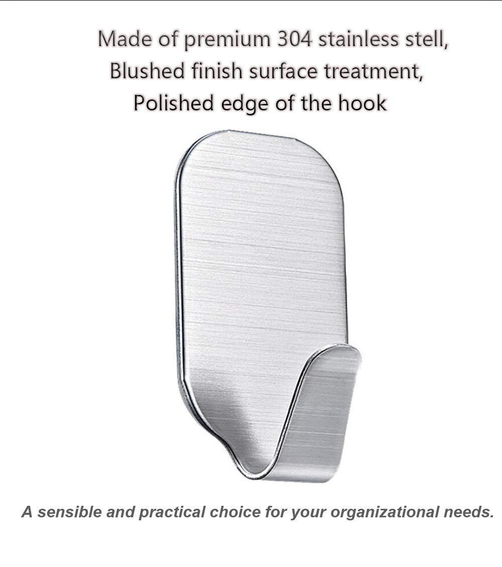 - GOOD DESIGN OF PRODUCT SIZE. Compared to the adhesive hooks from other sellers, our product is a little big with heavy duty support, making of real 304 stainless steel, and the surface treatment is well brushed without sharp edges.