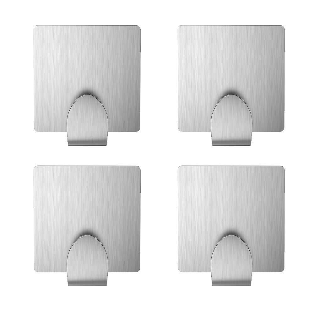 Adhesive Key Hooks, KONE 3M Self-Adhesive Wall Hooks Stainless Steel Hooks for Hanging Robe, Coat, Towel, Bags (4 Pack)