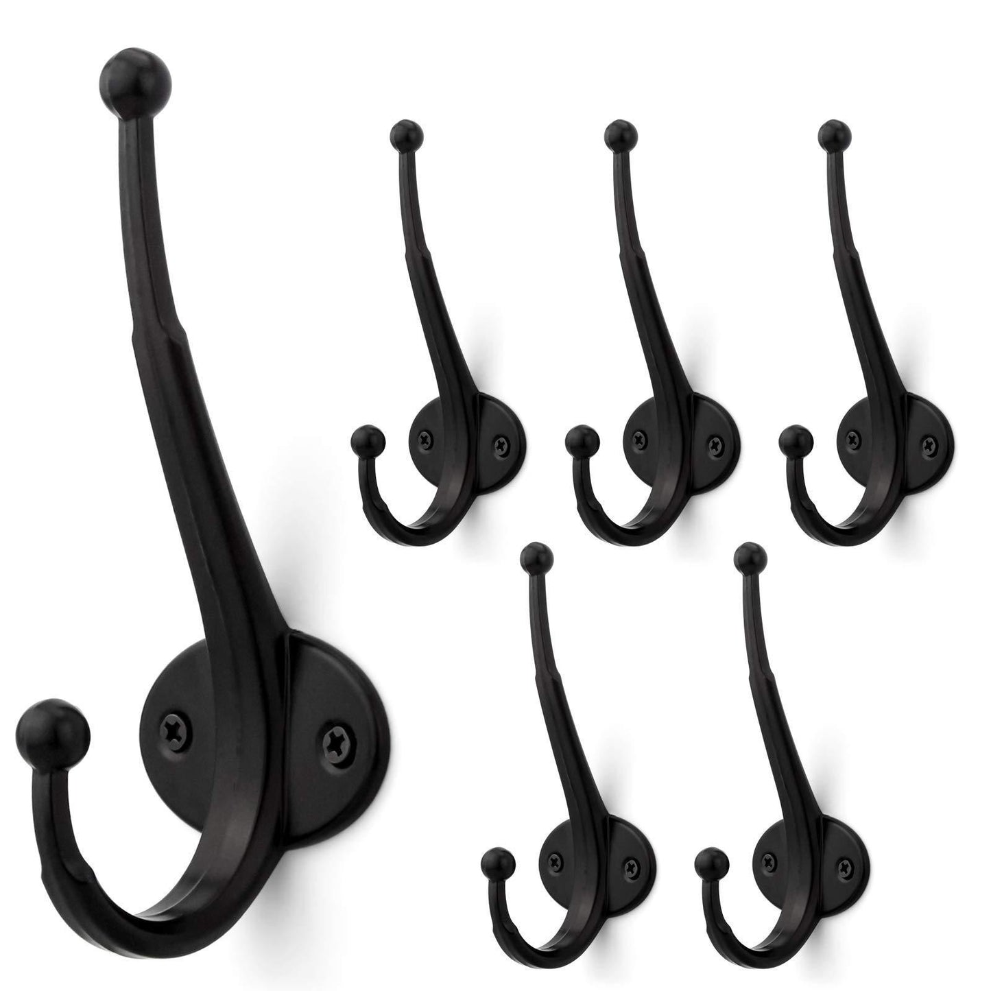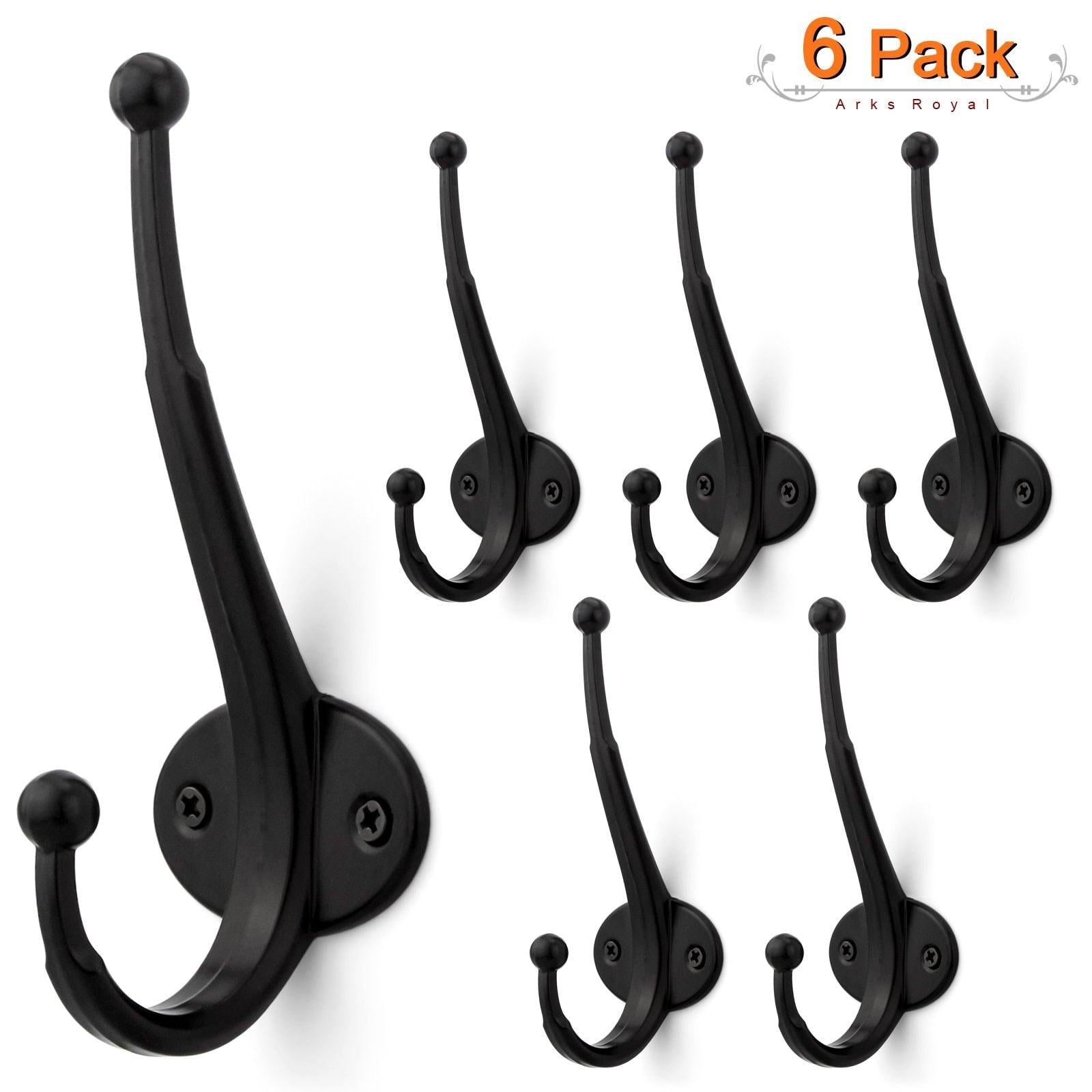 Arks Royal Heavy Duty Metal Coat Hook with Ball Ends, Thick Long Retro Prong Hat Hook Bath Towel Closet Clothes Hanger Rail Garment Holder, Flat Black, 6 PCS