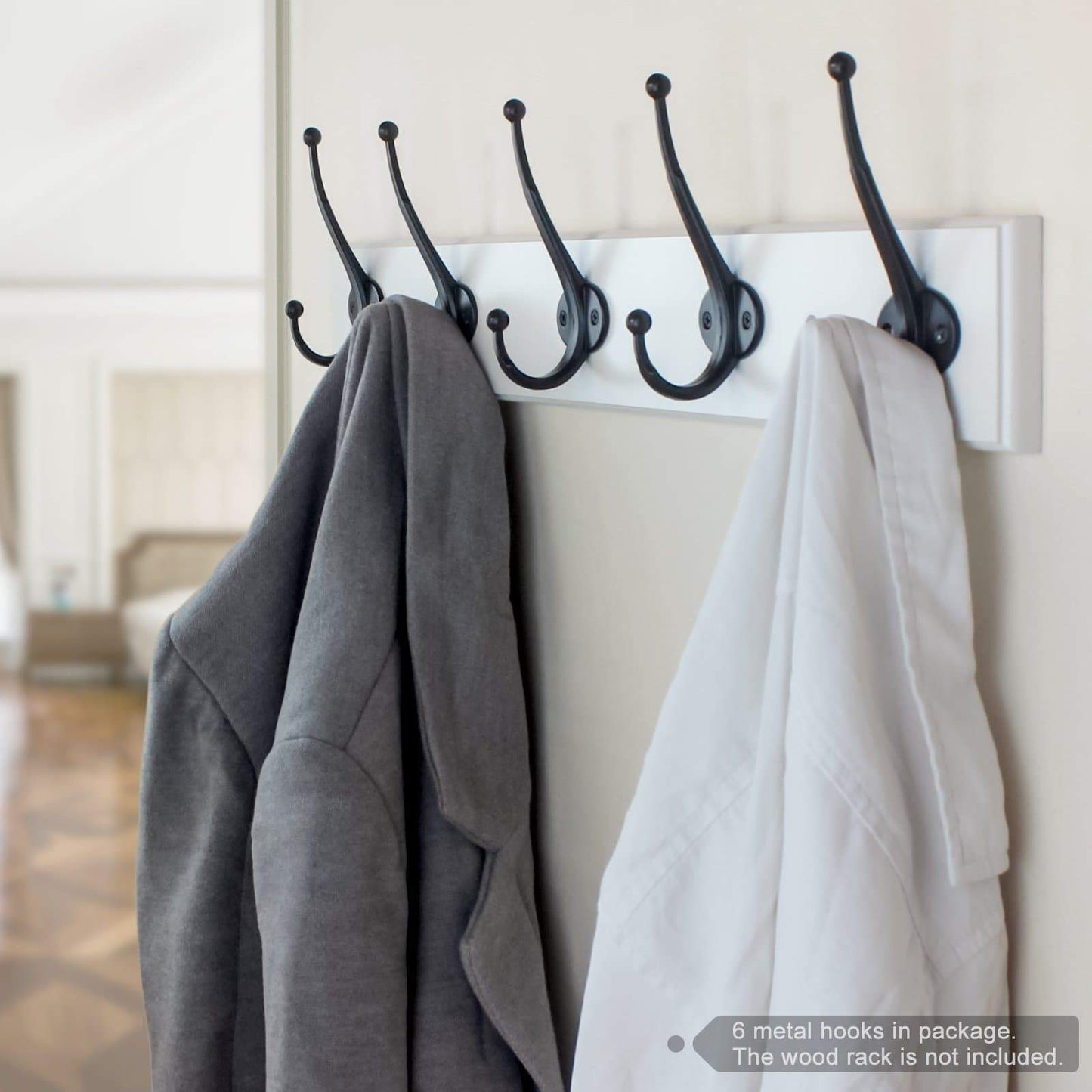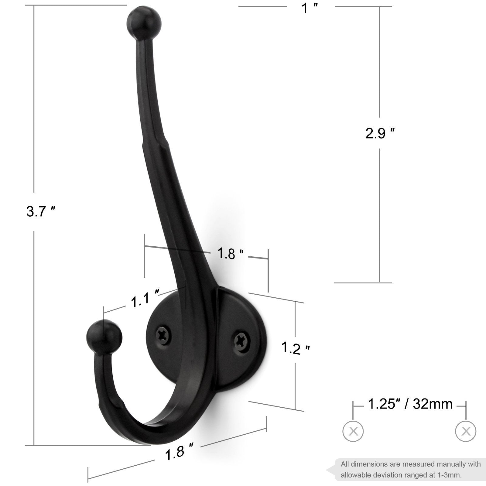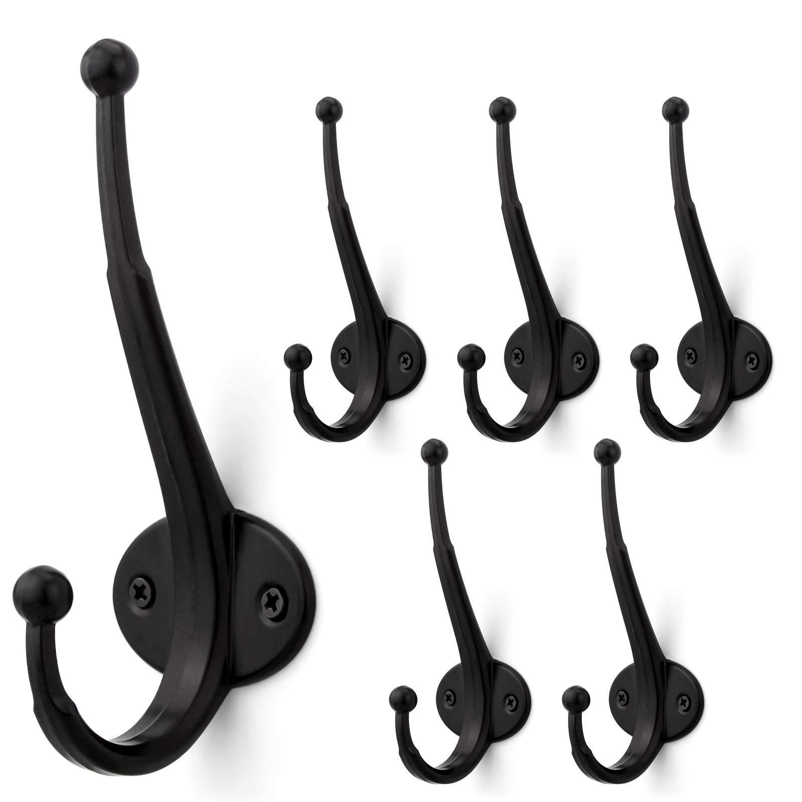 - DECORATIVE STYLISH LOOK -- The flat black retro heavy duty dual wall hooks come with stylish and aesthetic minimalist design. Keep the place organized while enhancing the beauty of your home with the pack of 6 wall mounted hooks.