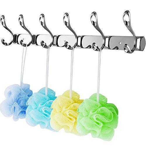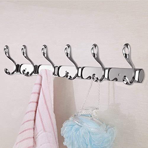 Arplis Wall Mounted Hooks, Stainless Steel Rack Wall Hanger with 6 Double Hooks Design, Coat Towel Rail Hook for Foyer, Hallways, and Bedrooms