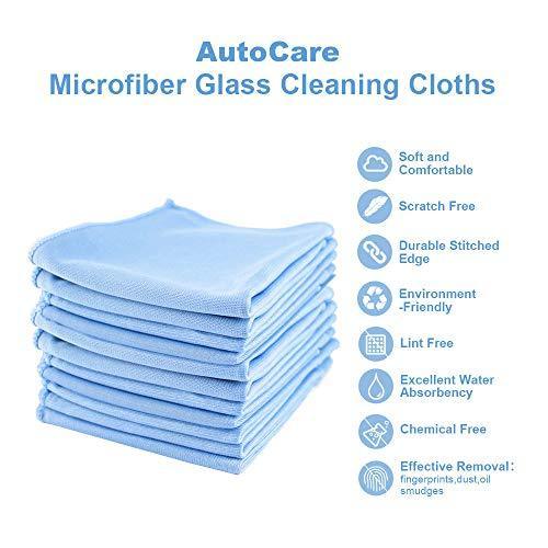 Auto Care Microfiber Glass Cleaning Cloths Towels for Windows Mirrors Windshield Computer Screen TV Tablets Dishes Camera Lenses Chemical Free Lint Free Scratch Free (12"x12", Blue, 8 Pack)