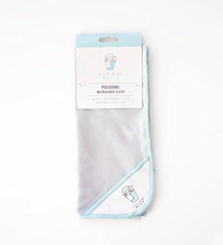 - 1 LARGE POLISHING CLOTH in soft gray with Clean Mama aqua trim. Measuring 16 x 19 inches, it's lint-free and streak free on all smooth surfaces. Perfect for windows, mirrors, stainless steel appliances, computer, and electronic screens