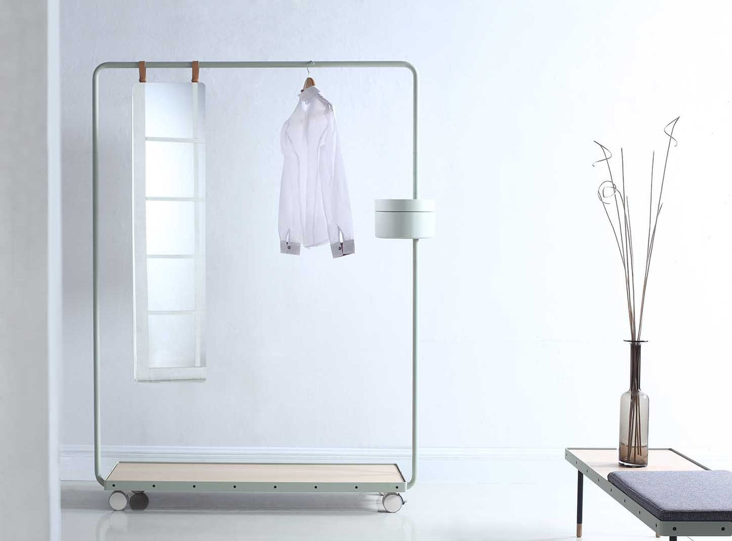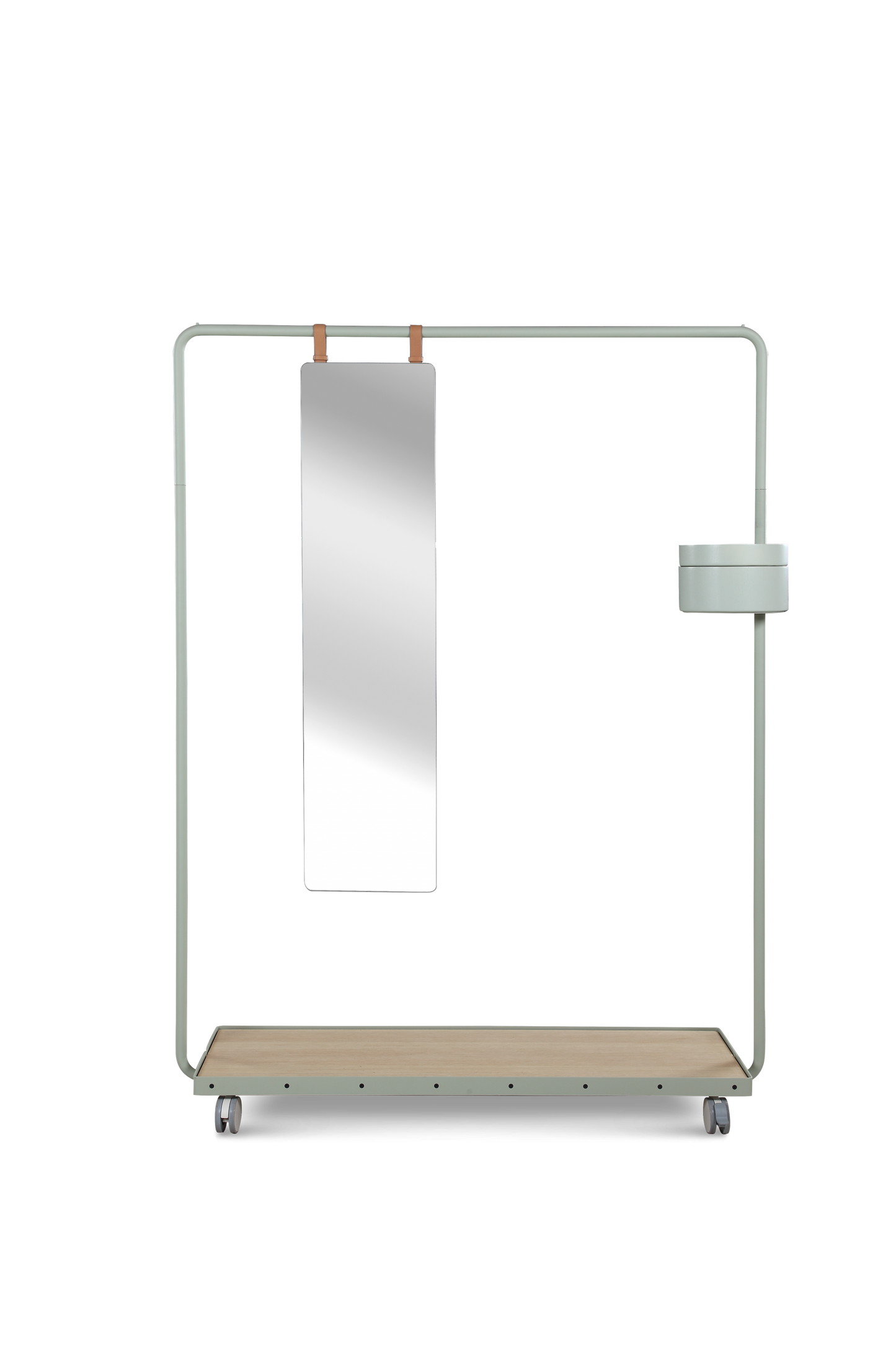 Dolores Clothing Rack is different from the garment racks you see in the market. This rack is designed so it is not only practicle, functional, but also attractive. It can serve as display unit in your store, or just a nice rack for your daily get-gos in your bedroom. Our clothing rack comes with 2 round wooden trays on one side. The position could be adjusted to your liking. Mirror with leather strap is also included with the unit, so you have everything you need when planning a crazy night out. Our rack comes in two finishes: smoke oak with black metal trim, and light oak with grey metal trim. Locking wheels included.