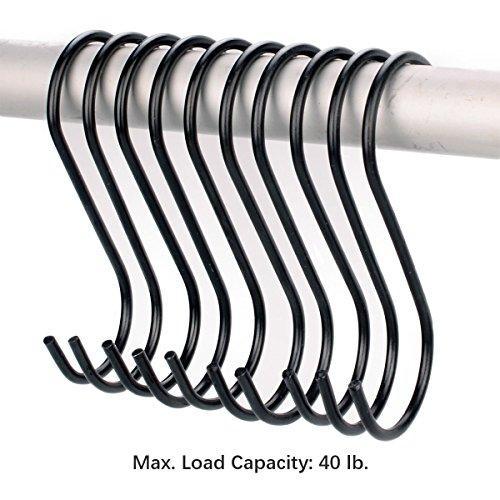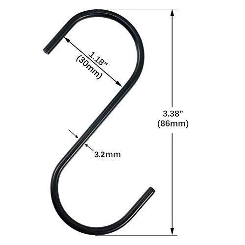 Flammi 20 Pack Heavy-Duty S Shaped Hooks Rustproof Black Finish Steel Kitchen S Type Hooks Hangers for Pans Pots Plants Bags Towels