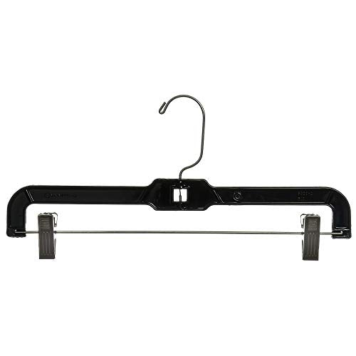 The 5131 is a 14 inch black plastic bottom hanger, good for pants, skirts, slacks and shorts. The metal swivel hook is silver color and turns freely. Making it easy to hang garments on the rack or in your closet. The sturdy padded clips keep all of your garments secure, no slipping here. The width is adjustable by sliding the clips from left to right on the metal bar. Makes these hangers suitable for children's or adult sizes. The 5131 is perfect for home or retail use. Packed 100 to a box the 5131 is a definite value. Using identical hangers creates a sleek organized look, Transforming your closet from chaos to coordinated. With this value Pack your closet will maintain the look you always wished for. See the difference