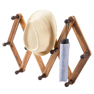 MyGift 10 Hook Burnt Wood Wall Mounted Expandable Accordion Peg Coat Rack Hanger