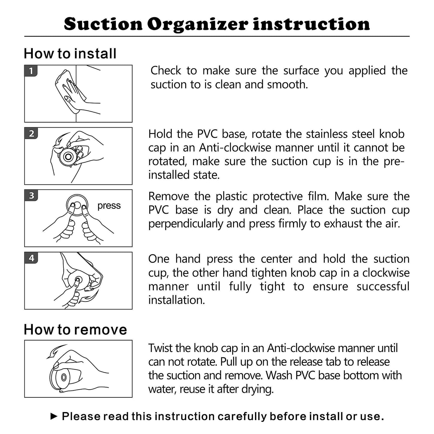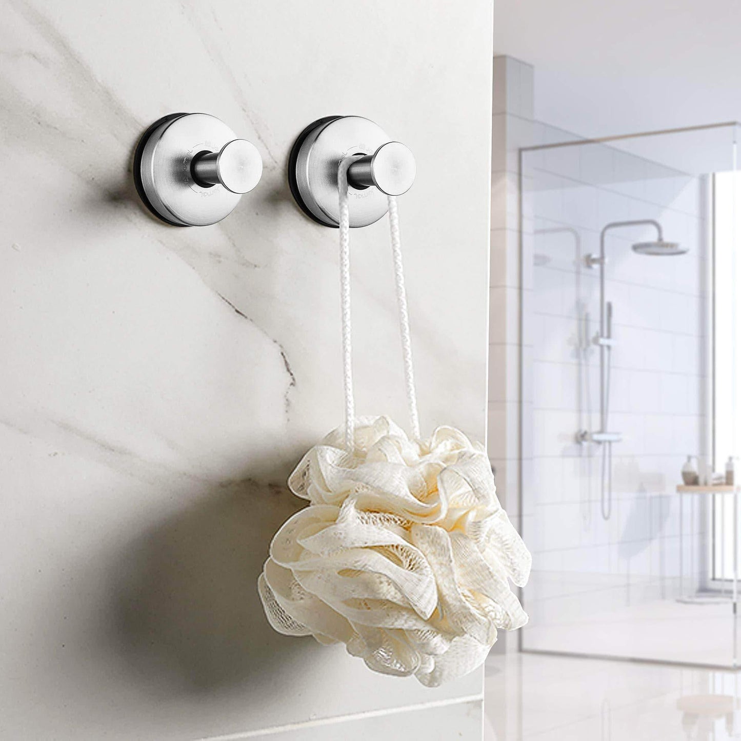 - Removable Shower Suction hooks: Bathroom Wall Hooks Hanger for Towel, Bath Robe, Coat, washcloth, shower cap, Loofah. Support for repeated use, simply wash the suction cup by water after removing, then follow the complete installation instructions to reuse it after drying.
