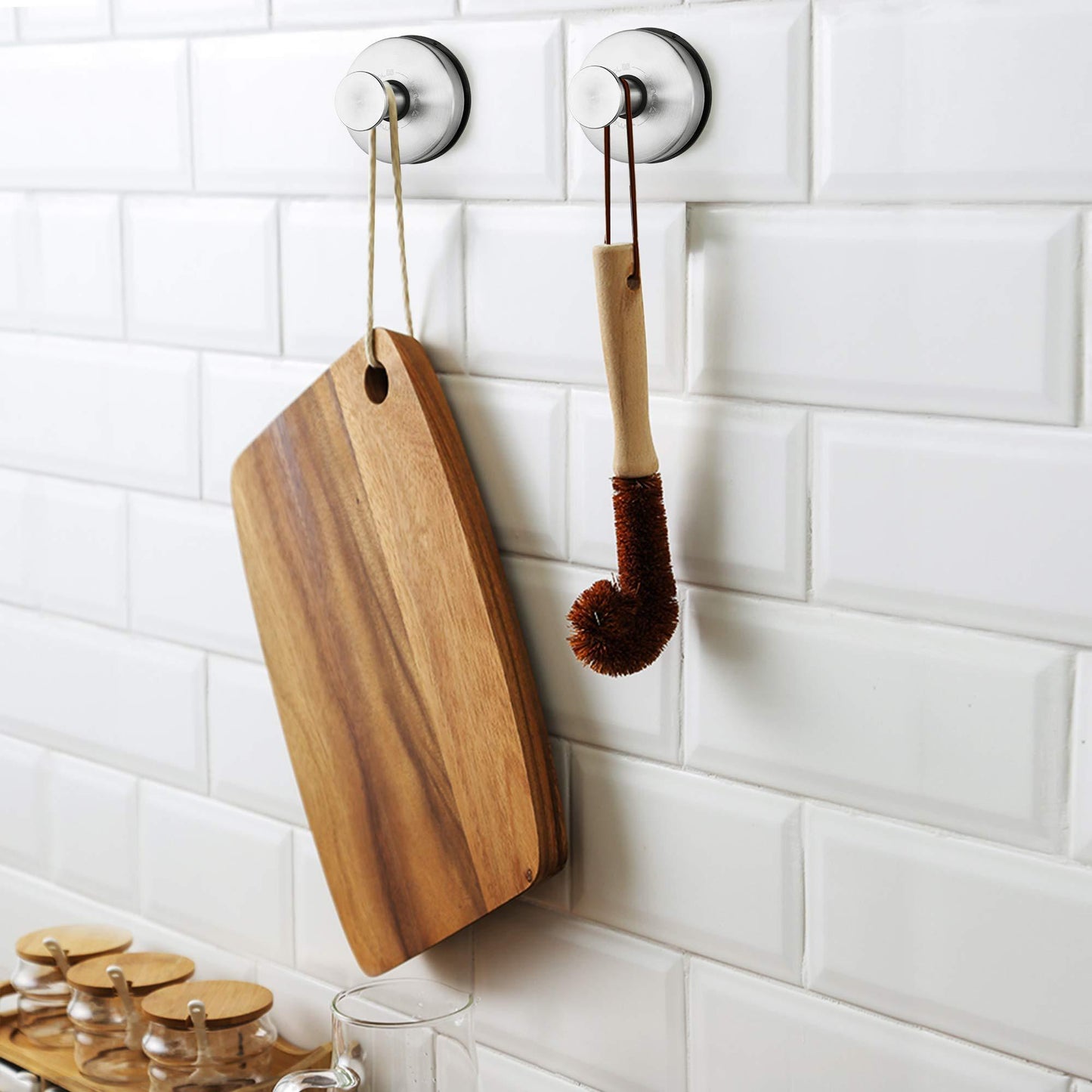 - Stainless Steel Utility Hooks: Kitchen Utensil Storage Organizer Hanger for counter. Kitchen tools sucker hooks can hang Spoon, beater, Spatula, scissors, towel and so on. Suction cup hooks for living room or bedroom to hanging bag, cloth, key, scarf and cap...