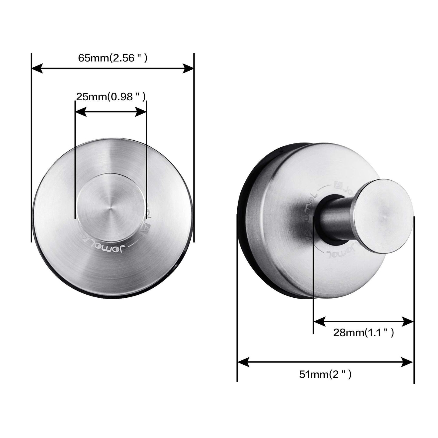 - Innovative Suction Cup Holder Design: JOMOLA Strong Vacuum suction hooks holder allow you to install at any corner of the house. No tools, no drilling, no surface damage. Overload-maximum weight 5KG (11lbs).