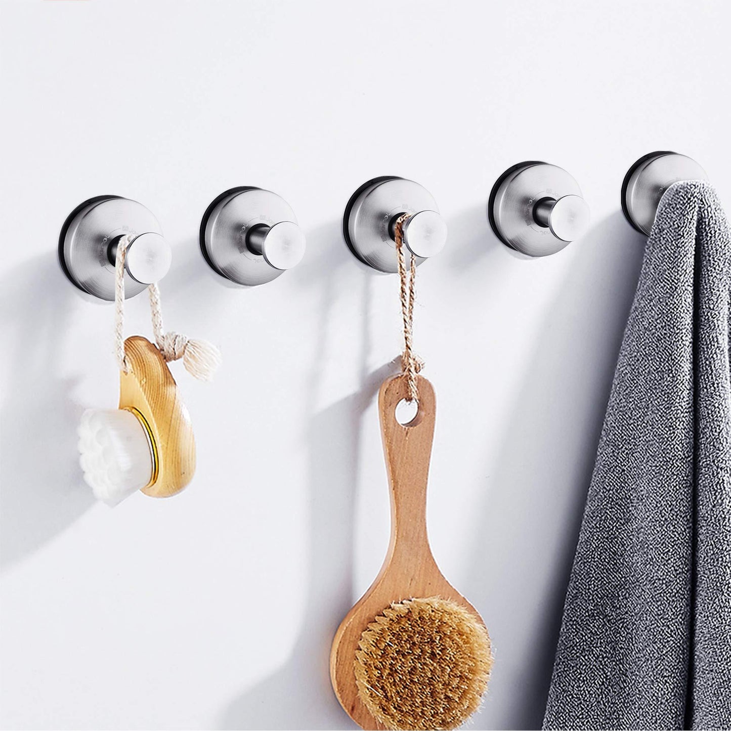 JOMOLA 2PCS Bathroom towel hook suction cup holder Utility Shower Hooks Hanger for Towel Storage kitchen Utensil stainless steel Vacuum suction cup hooks Brushed Finish