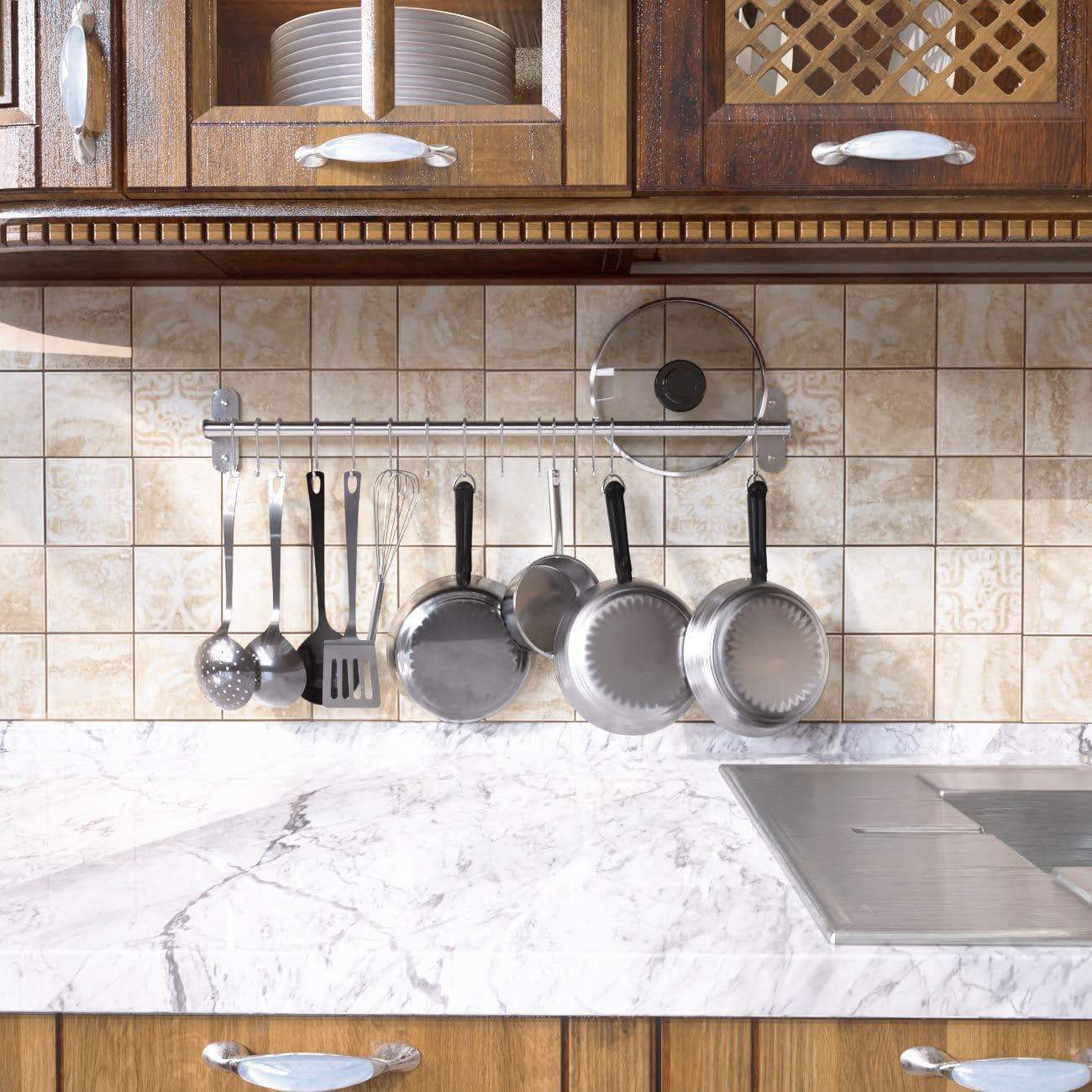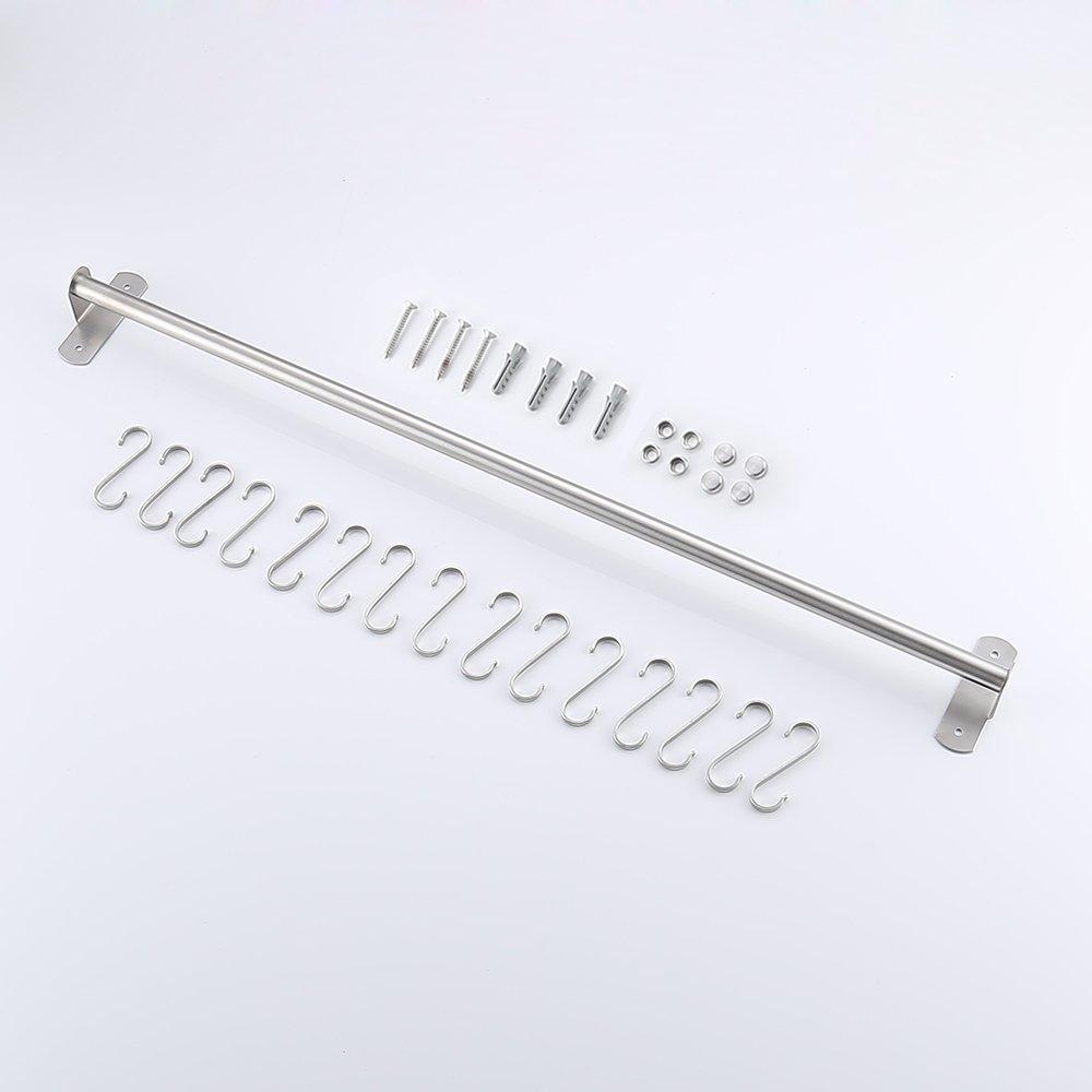KES Kitchen Rail Rack Wall Mounted Utensil Hanging Rack Brushed Stainless Steel Hanger Hooks for Kitchen Tools, Pot, Towel (15 Sliding Hooks), KUR209S80-2