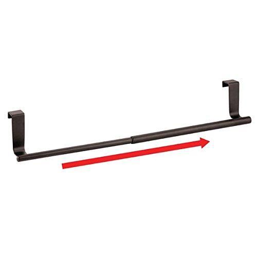 mDesign Adjustable, Expandable Kitchen Over Cabinet Towel Bar Rack - Hang on Inside or Outside of Doors, Storage for Hand, Dish, Tea Towels - 9.25" to 17" Wide - Bronze