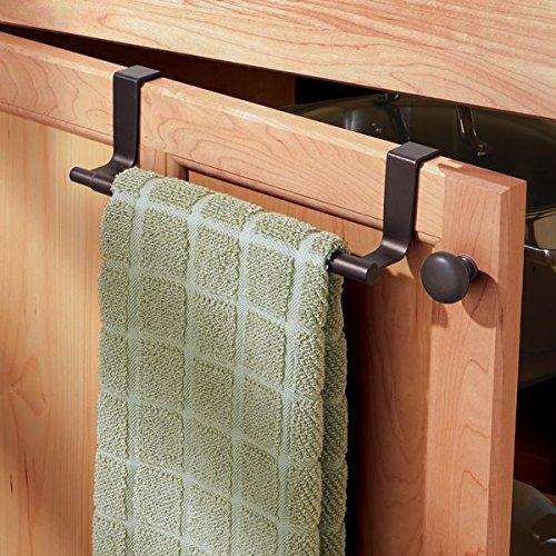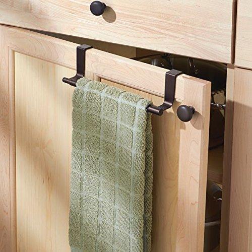 Details: Keep hand towels and dish towels always at your fingertips with the Over the Cabinet Towel Bar Holder from mDesign. The towel holder hangs over kitchen cabinet doors for instant storage with hassle-free installation. Hang on the inside for out of the way storage, or outside cabinets to make grabbing towels quick and easy. Expand to the desired size to customize your towel storage. A soft-foam backing protects your cabinets against scratches and damage so cabinets always look as good as new! mDesign - more calm, less clutter