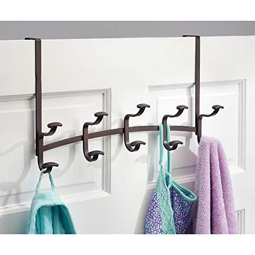 mDesign Decorative Metal Over Door 10 Hook Steel Storage Organizer Rack for Coats, Hoodies, Hats, Scarves, Purses, Leashes, Bath Towels & Robes, for Mens and Womens Clothing - Bronze