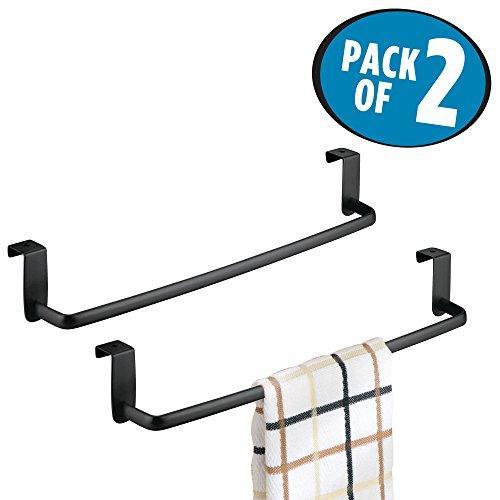 Details: Keep hand towels and dish towels always at your fingertips with the Over the Cabinet Towel Bar Holder from mDesign. The towel holder hangs over kitchen cabinet doors for instant storage with hassle-free installation. Hang on the inside for out of the way storage, or outside cabinets to make grabbing towels quick and easy. A soft-foam backing protects your cabinets against scratches and damage so cabinets always look as good as new! mDesign - more calm, less clutter