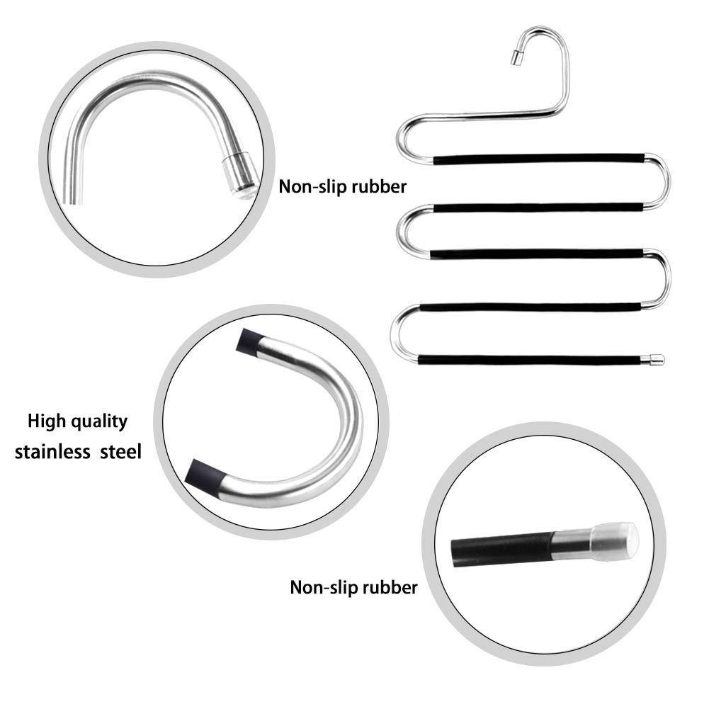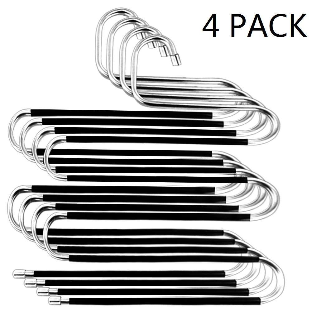 Pants Hangers - 4 Pack Scarf Hangers S-Type Clothes Pant Hangers Multi-Purpose Pants Hanger Space Saving Non-Slip Closet Organizer for Scarfs Jeans Clothes Trousers Towels