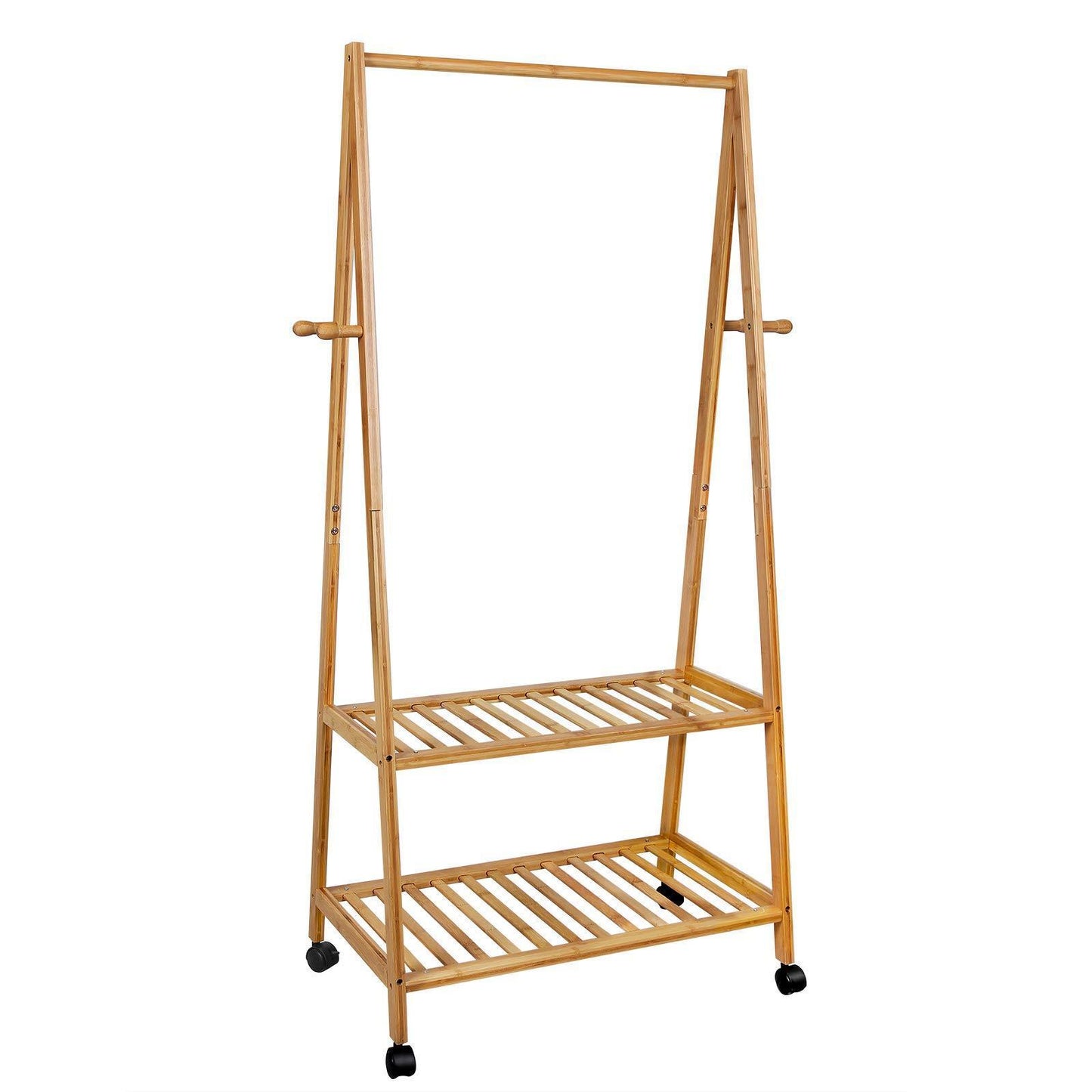 Details: The SONGMICS bamboo multifuctional standing rack is great and practical in use for any home. It provides ample storage for coats, shoes, bags, hats, scarves, suitcases, plants and other sundries. It is also convenient to move with four wheels to air your garment. You can hang them on the rack or put on the boards.