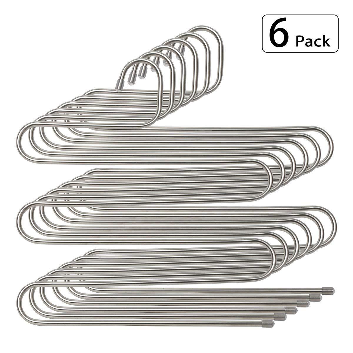 Stephenie 6 Pack S Type 5 Layer Stainless Steel Hanger with Multifunctional for Pants Tie Scarf Anti-Skid Scarf Towel Clothes