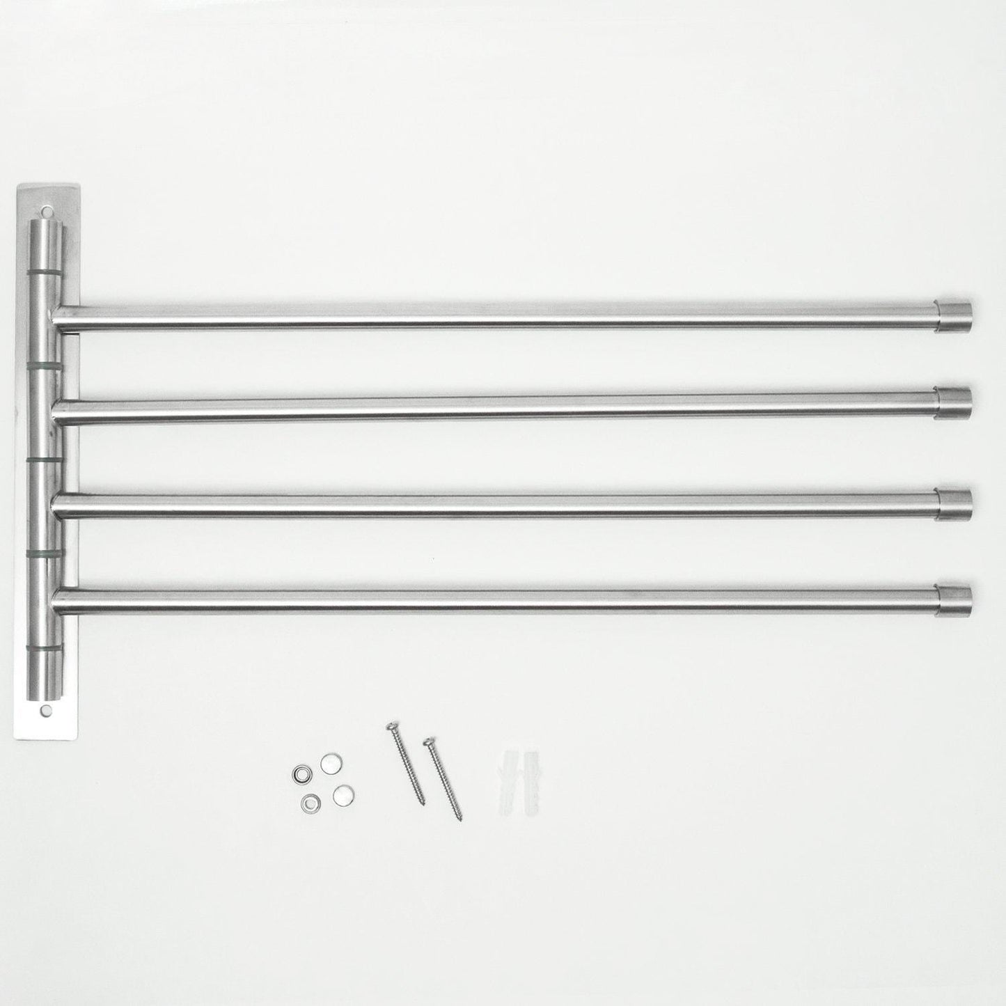 Swivel Towel Rack - Stainless Steel Swing Out Towel Bar - Space Saving Swinging Towel Bar for Bathroom - Wall Mounted Towel Holder Organizer with 4 Arms- Easy To Install - Brushed Finish (17"X10")
