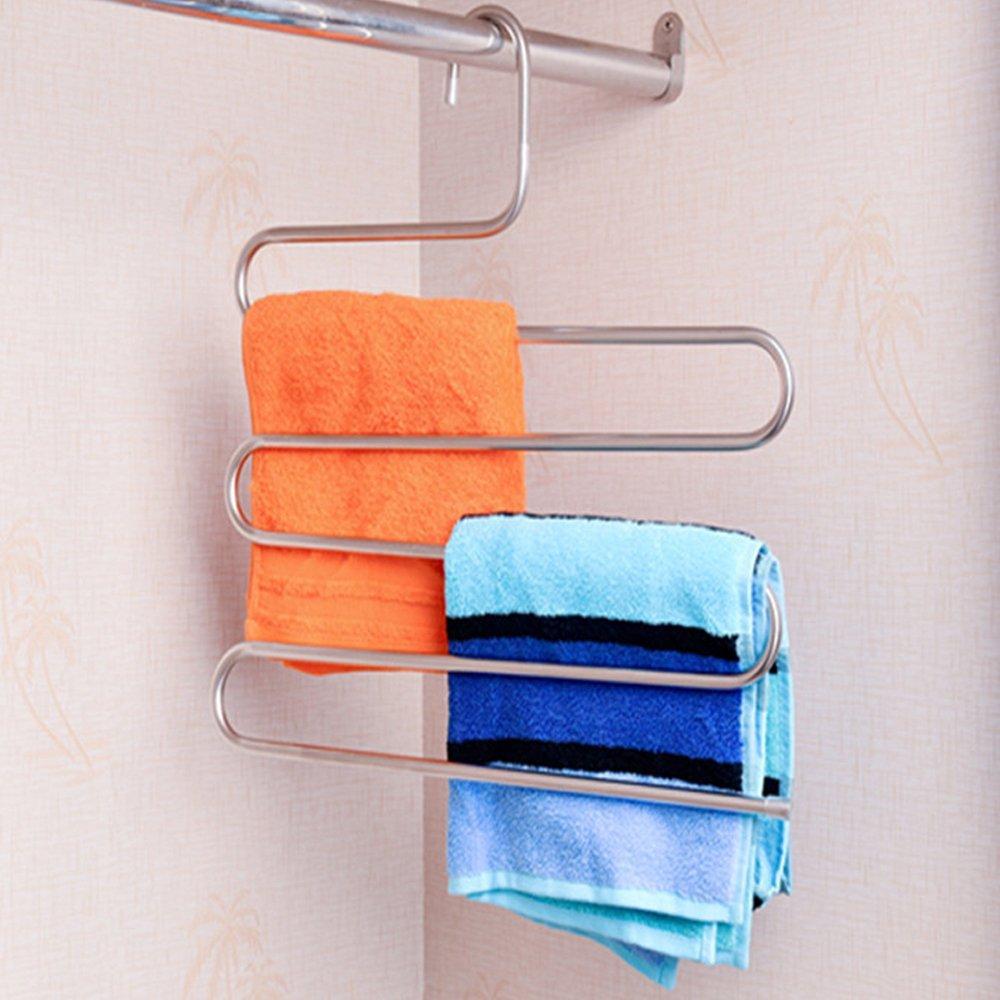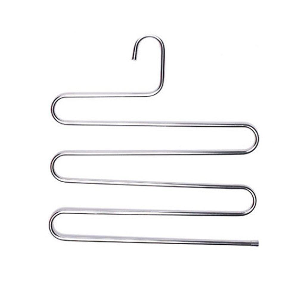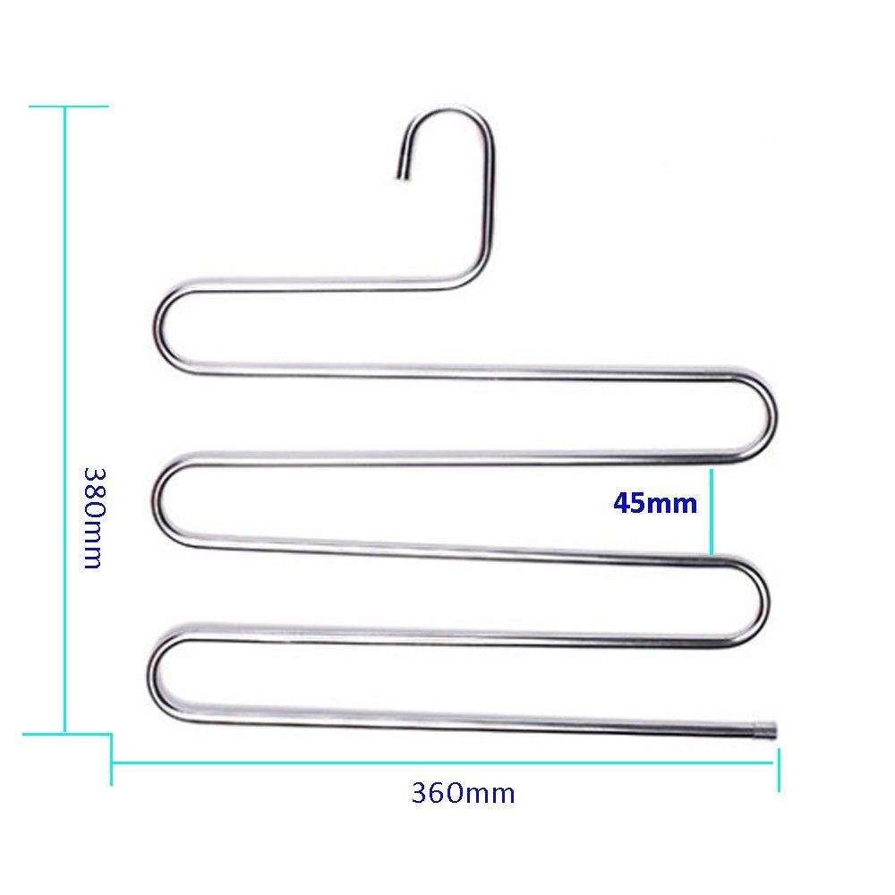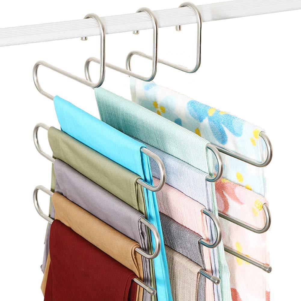 TEERFU 3 Pack Study Pants Hangers S-Type Stainless Steel Trousers Rack 5 Layers Multi-Purpose Closet Hangers Magic Space Saver Storage Rack for Clothes/Towel/ Scarf/Trousers/ Tie