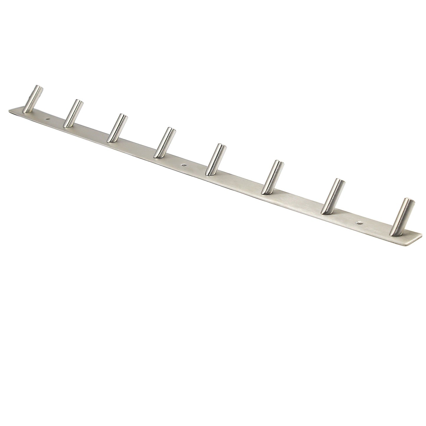 WEBI 2 Set V SUS 304 Modern 8-Hook Coat Hat Bath Towel Hooks Robe Garment Rack Hanger Rail Holder, Screw Wall Mount Closet Clothing Bathroom Garage Home Organization Storage, Brushed Nickel, V-YZG08-2