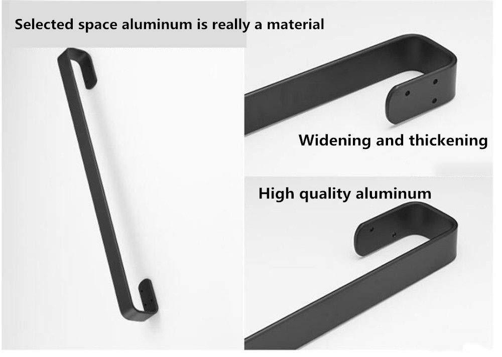 XJ&DD 3m self Adhesive Towel bar,Solid Thick Black Towel Rail,Space Aluminum Rust Towel Rack for Bedroom Kitchen Office.Punch Free Punching Dual use-G 60cm(24inch)
