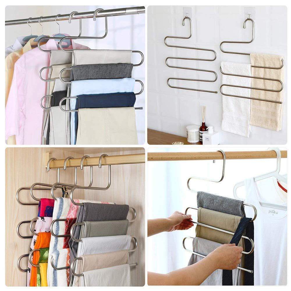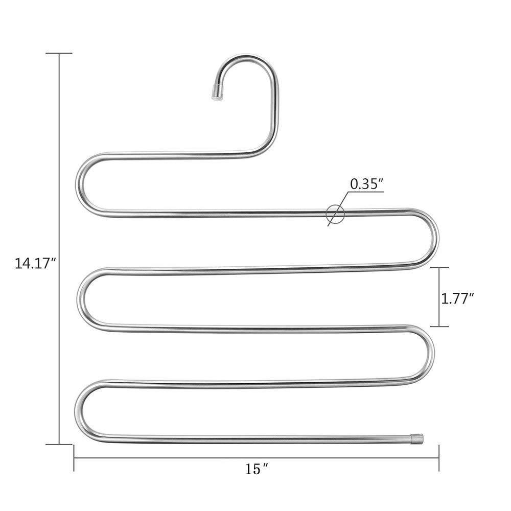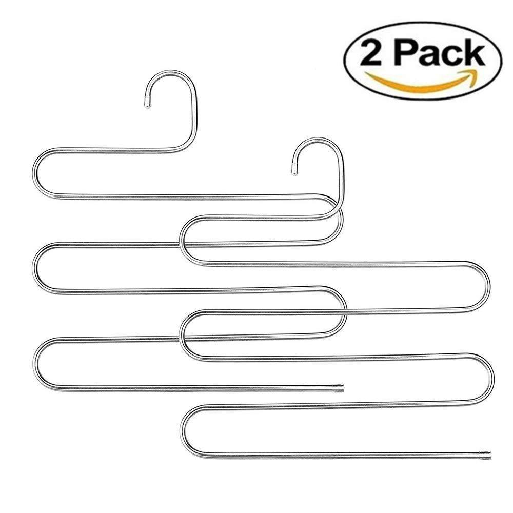 YCAMMIN Pants Hangers S-Type Stainless Steel Trousers Rack/5 Layers Multi-Purpose Closet Hangers Saver Storage Rack for Clothes/Towel/ Scarf/Trousers/ Tie etc(2 Pcs)
